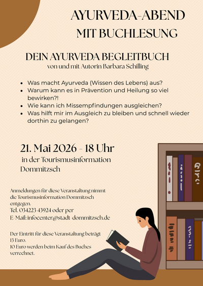 Buchautorin Barbara Schilling stellt am 21. Mai 2026 ab 18 Uhr ihr "Ayurveda Begleitbuch" in der Dommitzscher Tourismusinformation vor.