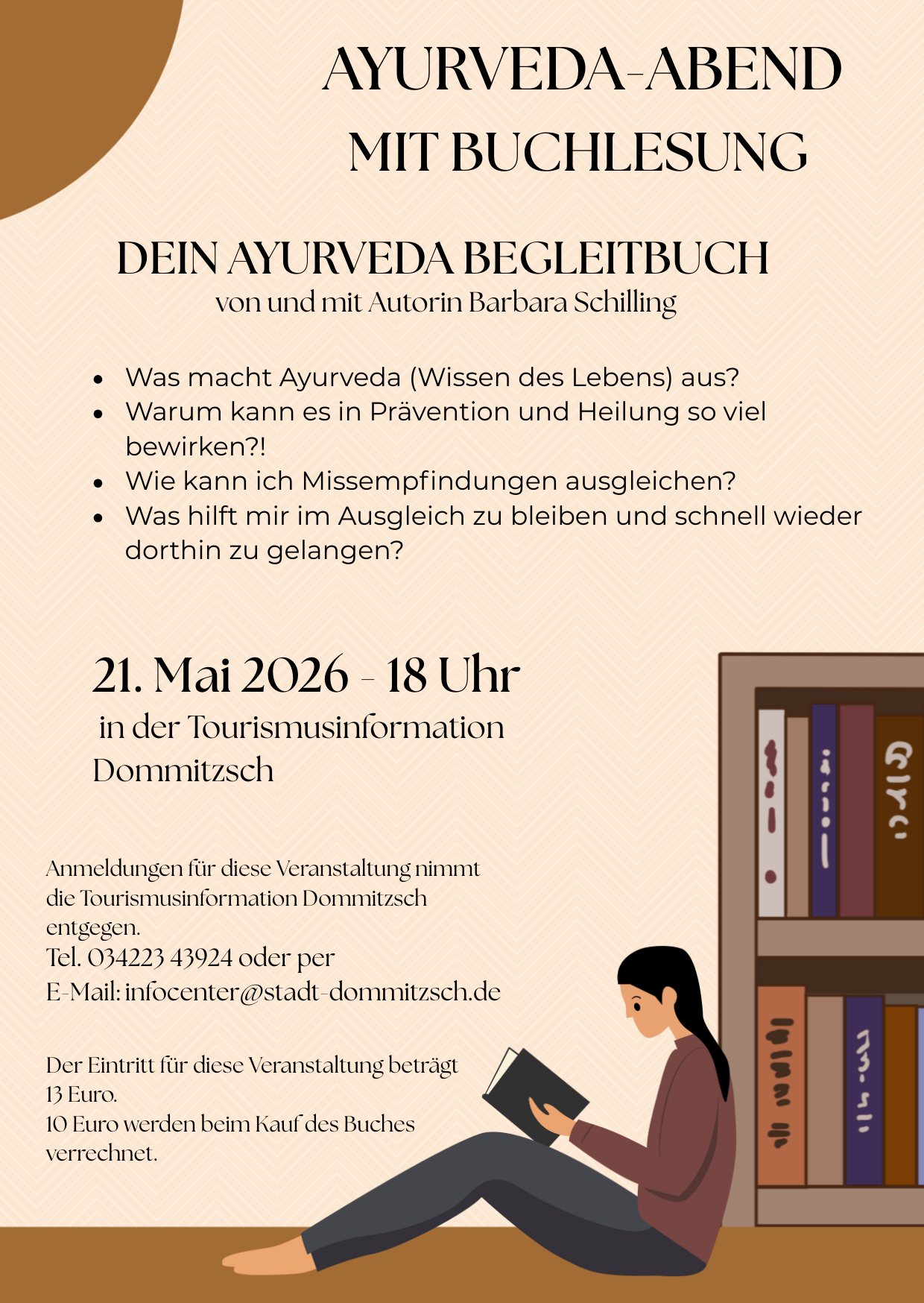 Barbara Schilling stellt am 21. Mai 2026 ab 18 Uhr ihr "Ayurveda Begleitbuch" in der Dommitzscher Tourismusinformation vor.