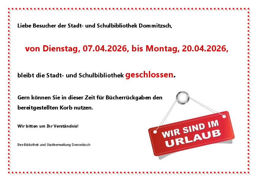 Liebe Besucher der Stadt- und Schulbibliothek Dommtzsch,