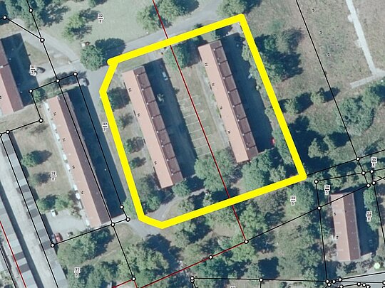 Das Grundstück Straße des Friedens 6 a bis 6 d liegt in der Gemarkung Dommitzsch, Flur 15, Flurstück 32/8 und umfasst eine Teilfläche von ca. 3.400 m².
